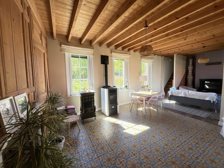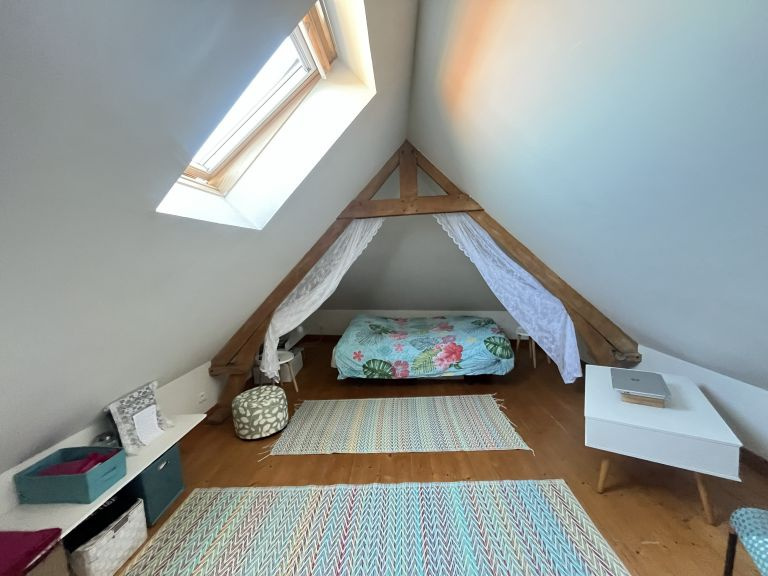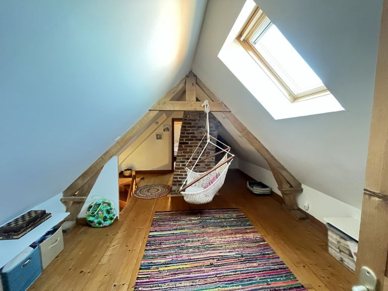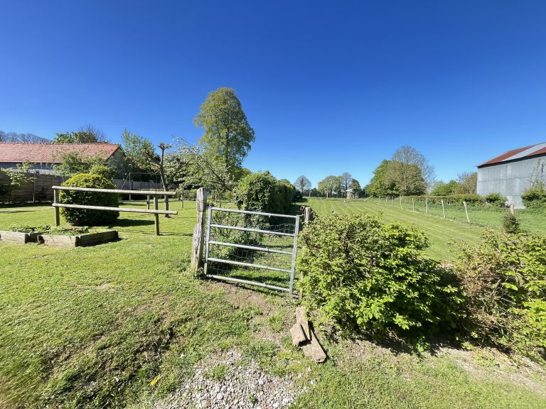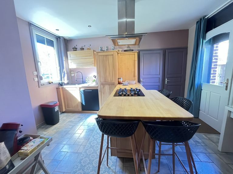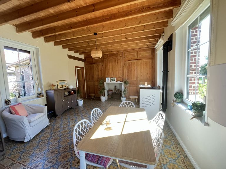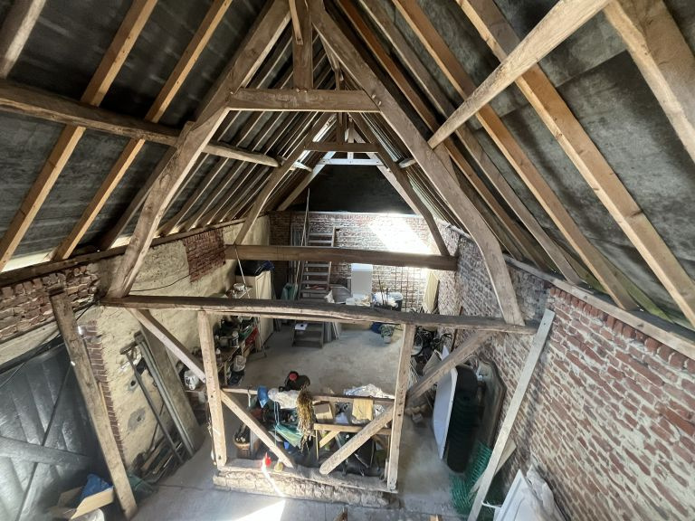 Réf. 4500 – Fermette de charme avec dépendances Située dans un petit hameau calme, à proximité de Saint-Pol-sur-Ternoise, cette fermette en briques en très bon état offre un cadre verdoyant et plein de caractère. Elle se compose d’un séjour double chaleureux avec poêle à pellets, insert, poutres apparentes et carrelages anciens, d’une cuisine équipée avec îlot central, d’un bureau traversant, d’un cellier et d’une mezzanine. À l’étage : palier desservant 2 belles chambres mansardées. Cave. Anciennes étables aménagées comprenant une chambre, un WC et une buanderie. Côté dépendances : Grange d’environ 100 m² avec dalle béton, dont une pièce aménagée avec SPA et vue sur le jardin Hangar de 120 m² avec dalle béton (hauteur 4,20 m) Le tout sur un beau terrain arboré de 1 753 m², dans un environnement calme et agréable. Double vitrage – assainissement conforme. Idéal pour les amoureux de la campagne et des biens de caractère !